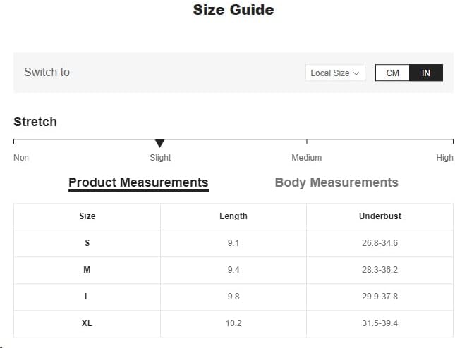Small: Length: 9.1″, Underbust: 26.8-34.6″,