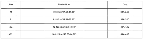 Under Bust: 70-81cm/27.56-31.89” Cup: 32A-34D