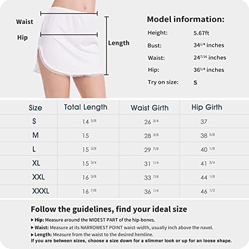 【ELEGANT DESIGN FOR EVERYDAY USE】This slip skirt for women features an elastic waistband, above knee-length with soft delicate floral lace hem, both side slit design allows for freedom of movement. A super comfortable women’s half slips that hugs your curves and will not bother you while wearing it.