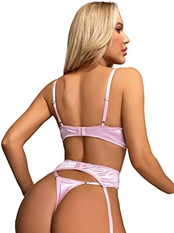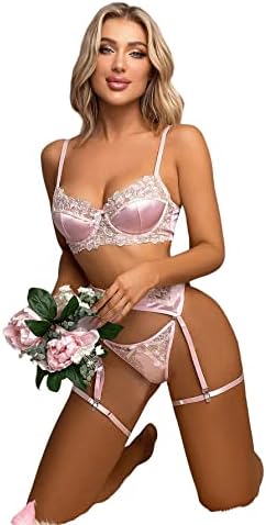 SweatyRocks Women’s 4 Piece Lingerie Set Floral Lace Bra and Panty with Garter Nightwear/ Type: Sexy Sets/ Bra Type: Underwire/ Panty Type: Thongs & V-Strings/ Number of Pieces: 4 Piece Set & More/ Fabric: Slight Stretch/ Chest pad: No Padding/