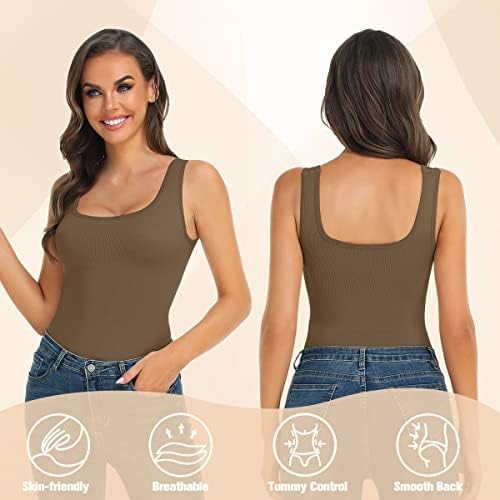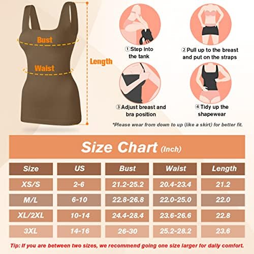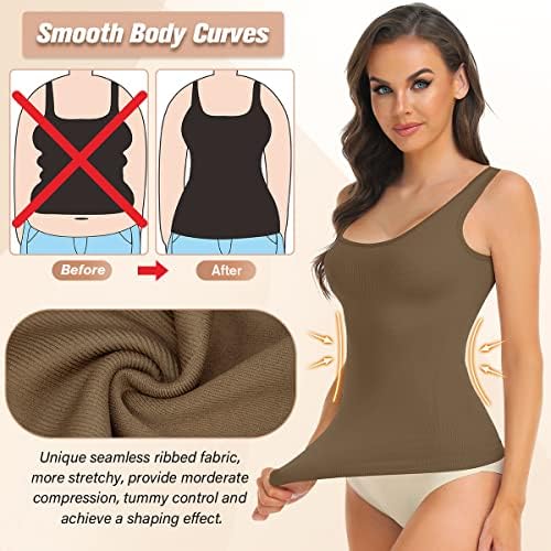 【SHAPE WAIST & TUMMY CONTROL】This body shaper tops provide multi-directional support for easy abdominal, back and waist control. The midsection of the compression tank tops features a unique waist stitching craft that helps smooth your abdomen and outline the perfect body curve. The control of the shapewear starts from the area below the bust. No compression your chest.