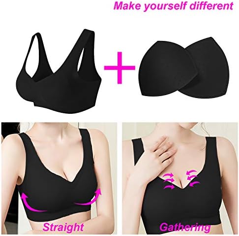 ➤UP YOUR CUP: Removable Sports Cups Bra Pushes up the breast and provides a smooth look while holding and enhancing your shape.Lightweight bra inserts stay in place.Smart cups don’t slip at all, move around, or stick out of your bras even when exercising pretty hard.