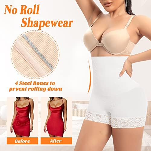 ◆No Roll Shapewear:4 steel bones design helps to prevent from rolling down,this tummy control shorts for women under dresses will stays in place on your waist.High-rise and abdominal double fabric design helps to reduces waistline creating a slimmer feminine silhouette.