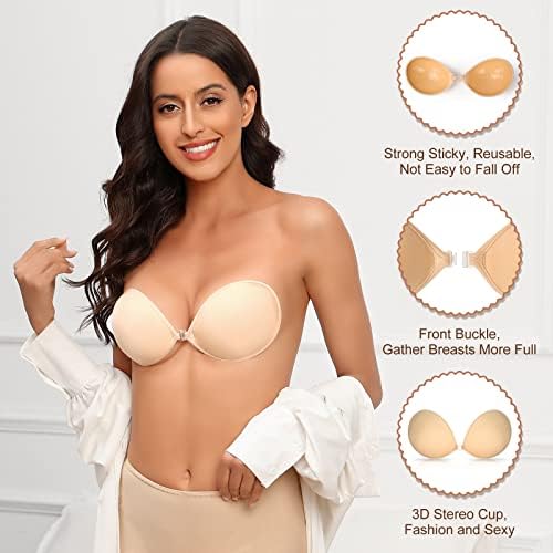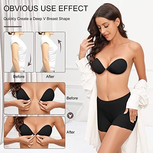 Push Up Function Bra: With front buckle, adhesive bra can greatly gather and push up your breasts, listfing your chest more fuller and appearing deep v-shaped cleavage. Make you look more charming and confident.