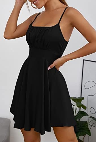 Adjustable Strap, Sleeveless, Ruched Bust, Low Back, Zipper Closure, High Waist Mini Dress, Tunic, Swing Shift A Line Short Dress