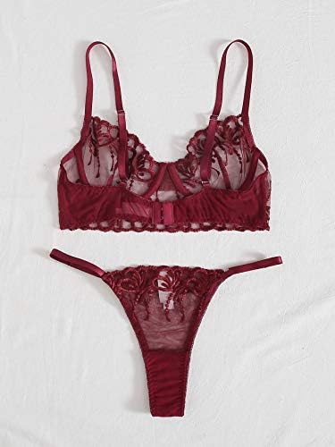 WDIRARA Women’s Two Piece Floral Sheer Lace Lingerie Set Underwear Bra and Panty Set