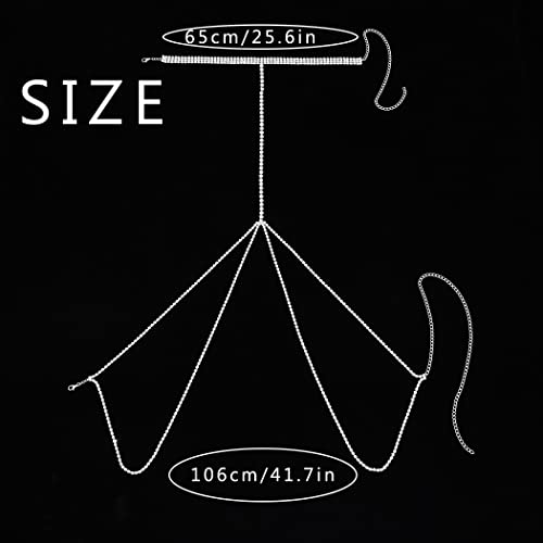 Sexy body chain size: 65-110cm/25.6-43.3in. Crystal bra chains has an extended chain, Adjustable size should be your choice.