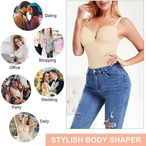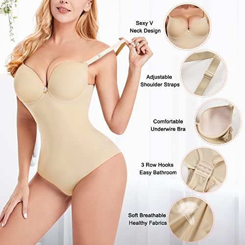 ►BUILT-IN BRA UNDERWIRE SUPPORT SHAPEWEAR: Our tummy control body shaper with a built-in underwire bra provides full boob coverage and chest support,supportive enough allow us wear bra-free and it will push up our breast softly and prevents the chest from sagging,show our womanly attractive figure.The crotch part use breathable soft material and adjustable 3 rows of hooks eyes closure make it easier to use the bathtroom,also we can adjust it to meet our maximize comfort.
